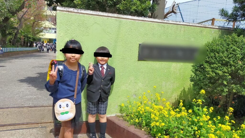 息子の小学校入学式(2022/04/11) 2025年10月19日 最終更新日時 : 2025年10月19日 サキ コロナの時代になってからの入学式。 朝からスーツを着ておめかしです(*^-^*) 執り行われるのか多少心配もしましたが、両親共に出席もできました。 娘は入学式の最中は下校しているので母が家で見ていてくれました。 入学式が終わったことを電話で母に伝えると娘と二人で学校まで来てくれて母も一緒に記念撮影をしました。 「ランドセルが重たい」という弟の言葉でお姉ちゃんがランドセルを代わりに背負ってくれていました😊 校門でも記念写真を順番に撮ることもできました😊 What do you think of this post?いいね (0)おもしろい (0)イマイチ (0) \ 最新情報をチェック / 共有: クリックして X で共有 (新しいウィンドウで開きます) X Facebook で共有するにはクリックしてください (新しいウィンドウで開きます) Facebook 関連記事 お花がキレイだよ😊花に興味を持っている子供達。 … 息子、6歳の誕生日プレゼント6歳になる息子が欲しいもの。 … 2021年、年末年始の出来事2021年のクリスマス… 我が家のお店。我が家にいるメダカの中に入れて… オープンでドライブ実家に戻った時にはオープンカー… フルーツの爆買い6月の終わり頃のこと。 外食も… FacebookXBlueskyHatenaCopy