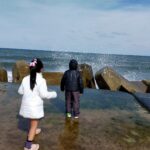 別の日に海へ行った時も子供たちは貝殻集めをしながら砂浜を楽しんでいました。