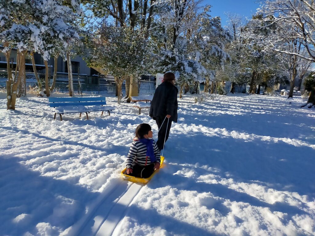 パパの仕事や学校もあるので1月4日には千葉の家に戻りましたが、この年は千葉でも雪が降りました⛄