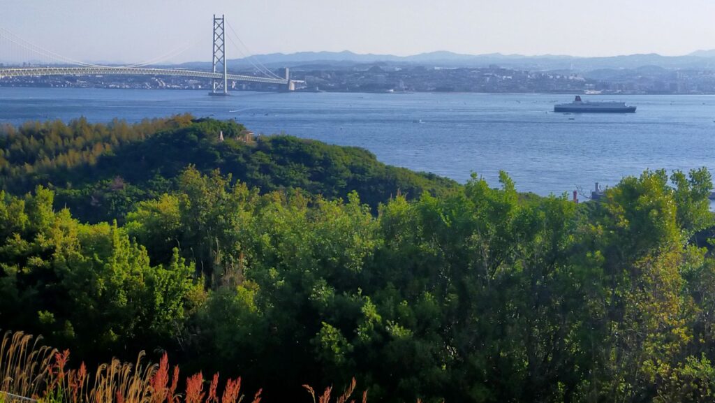 朝になり、パパが望遠鏡で遠くに見える神戸の街を見せてくれました。