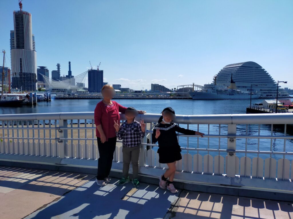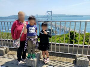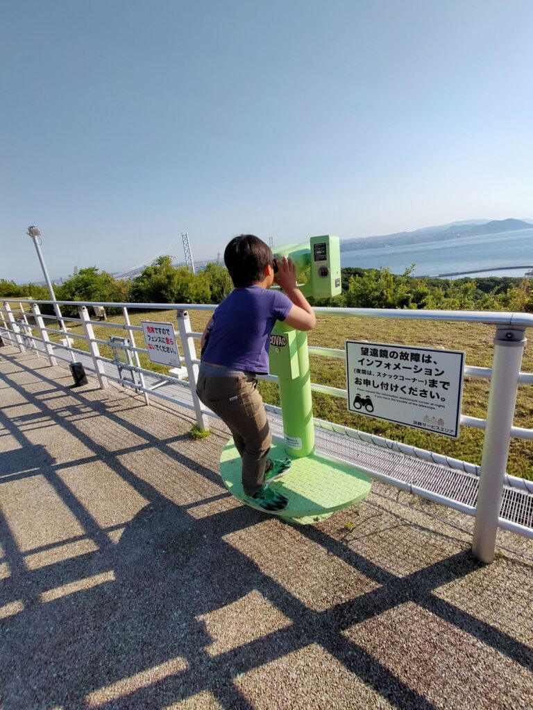 朝になり、パパが望遠鏡で遠くに見える神戸の街を見せてくれました。