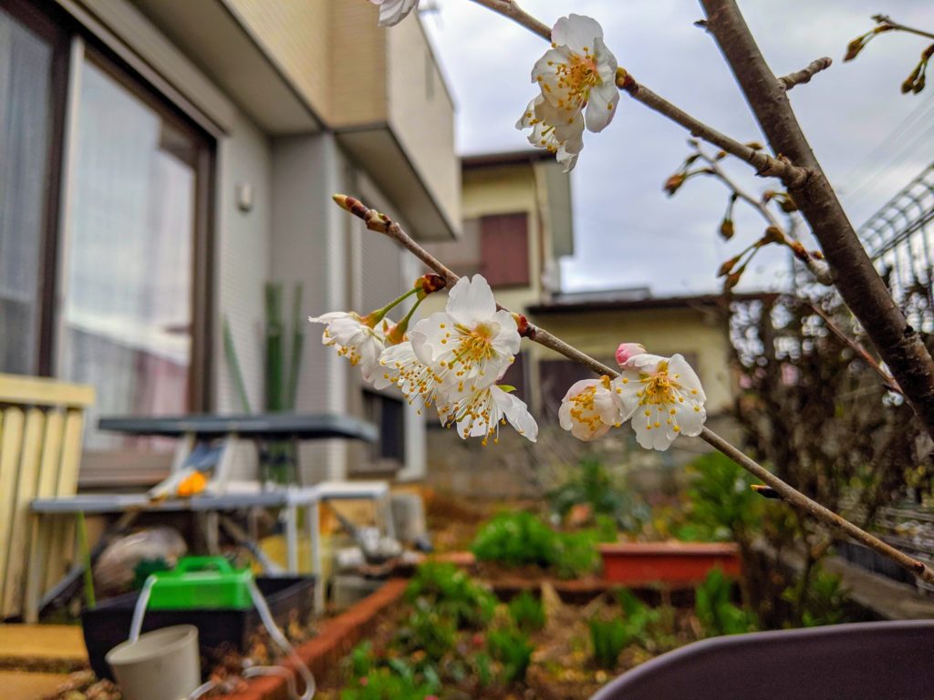 ひな祭りの翌日、我が家のさくらんぼ🍒の花が咲きました。