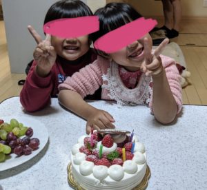 庭で朝食を食べていた時に突然決めたので、子供達は普通のお洋服💦