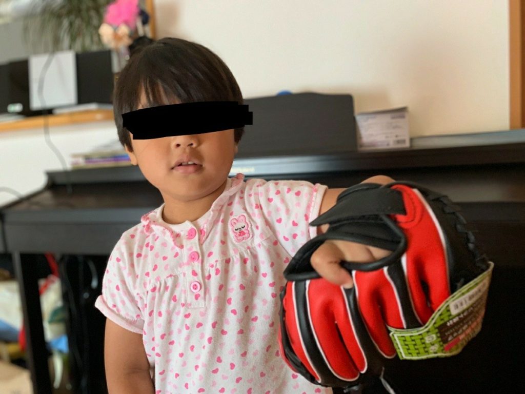 「赤いお兄ちゃん(智辯和歌山)がこうやってグローブ持ってたよ!こうすれば上手にボールが取れるって教えてもらった!!」