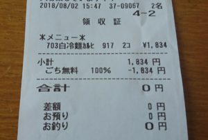 無料になってもレシートはくれるんですね(笑)