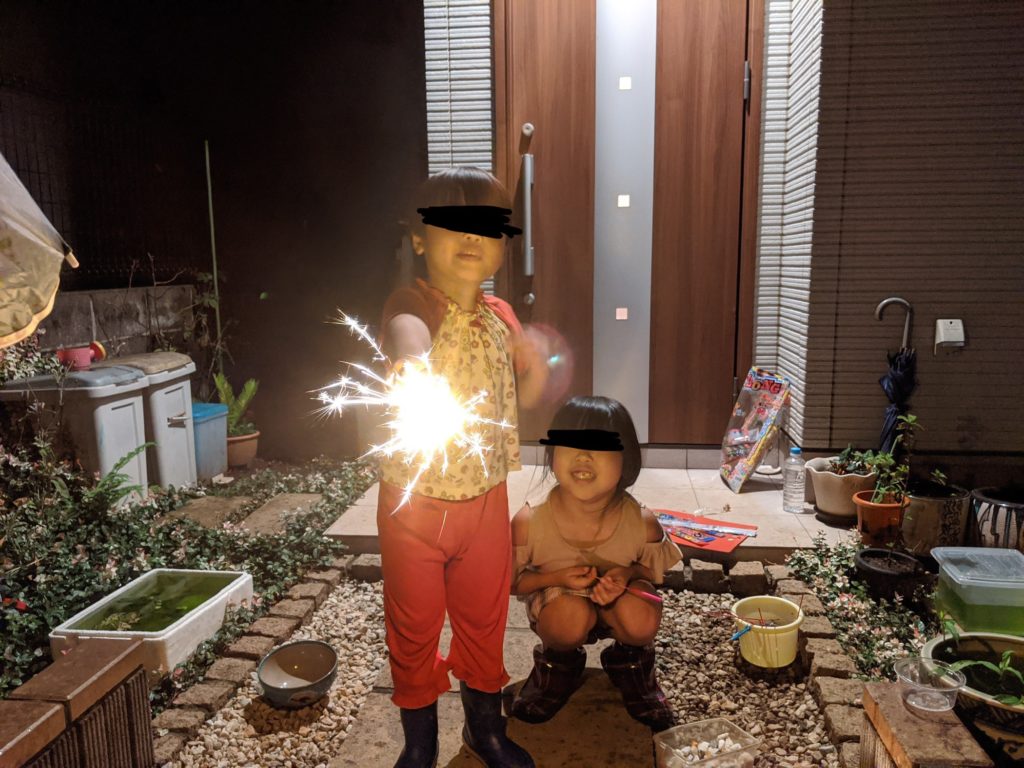 去年は線香花火がなかなか上手に出来なかったけれど、今年は二人とも最後の部分まで上手に出来ていました。