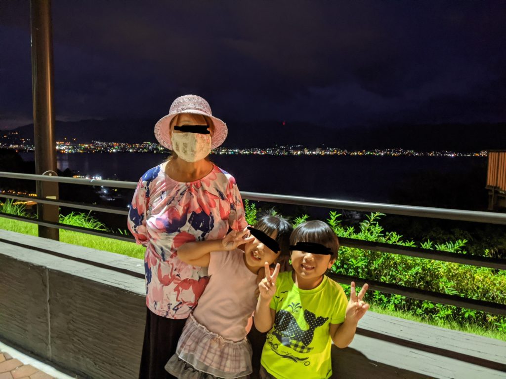 途中、諏訪湖S.A.で休憩しました。