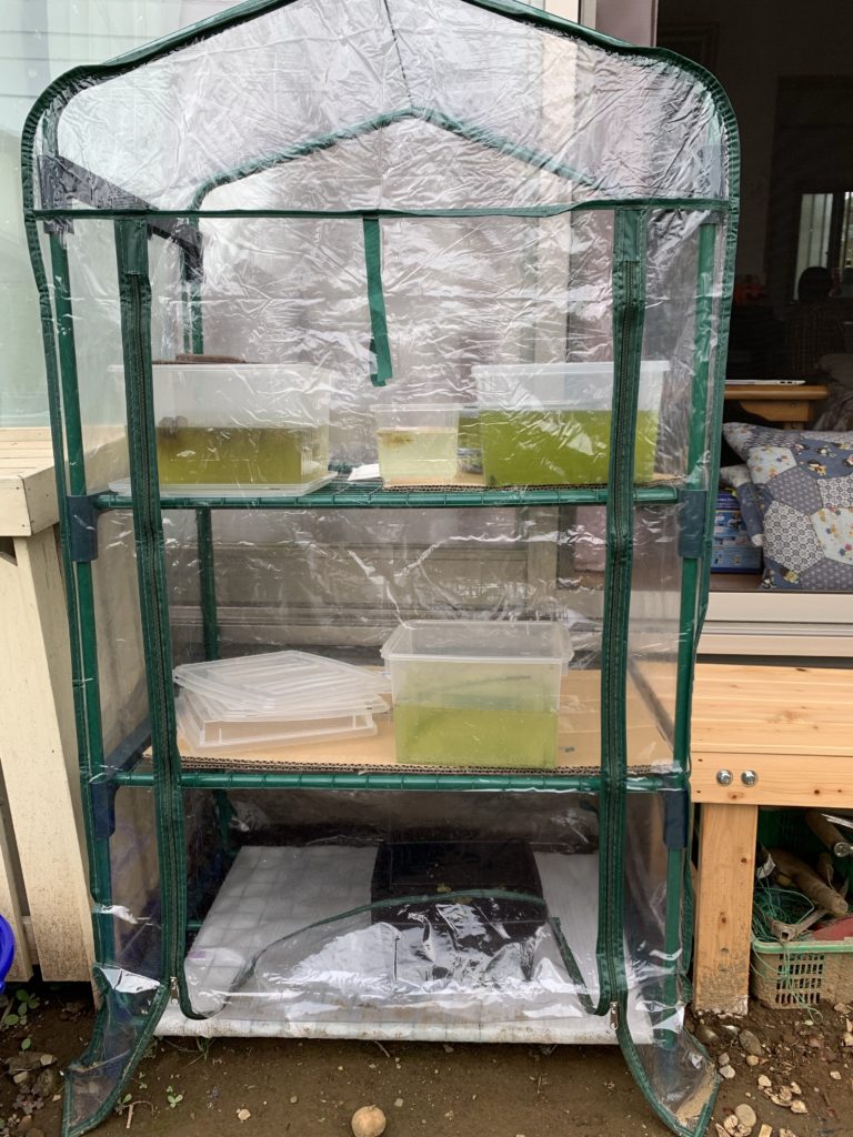 この後寒くなって行くと成長しきれず死んでしまうと可哀想なので、園芸用のビニールハウスを購入してきました。