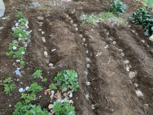 我が家の庭はほとんどが畑。 そろそろ終わりになってきた野菜を抜いて、昨日はジャガイモを植え付けました。 春菊はまだまだ採れるので残しました。 石灰をふって土を中和し、ふかふかにするのは大人の仕事。 ジャガイモは種が大きい […]