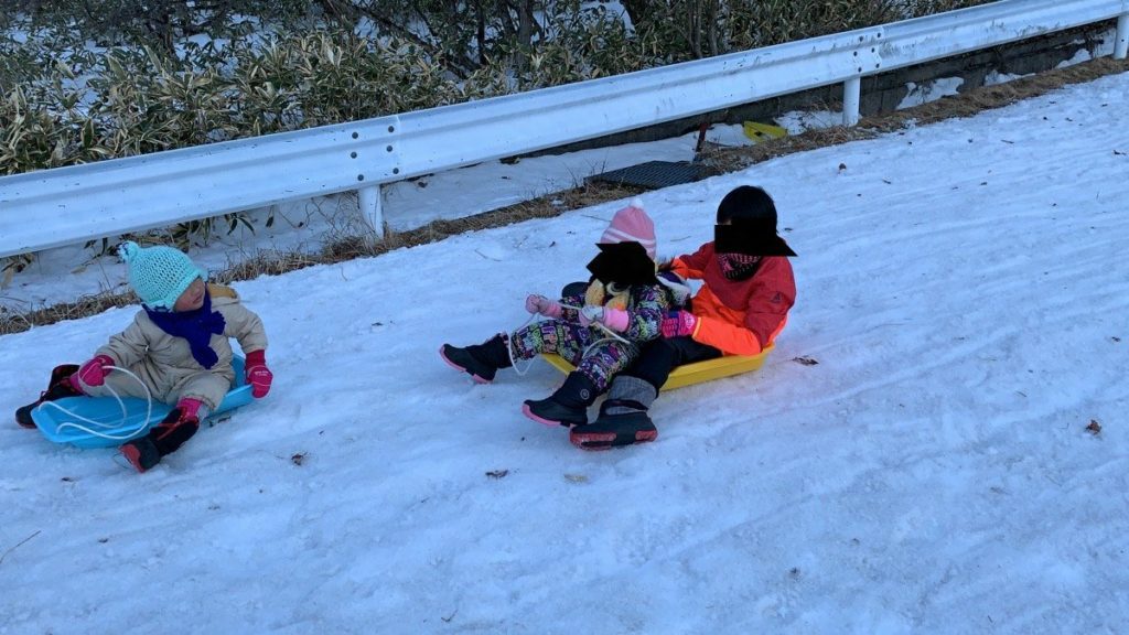 普段はスキーをしている人がいる場所でだったら充分ソリ遊びが出来ました💛