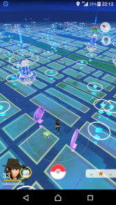 この写真だと量は名古屋とそんなに変わらないけれど、東京の道路は左右のポケストップが触れるので、もう少し繁華街だと2ヶ所や3ヶ所のポケスットップを回せなくても全く悔しくないのです。