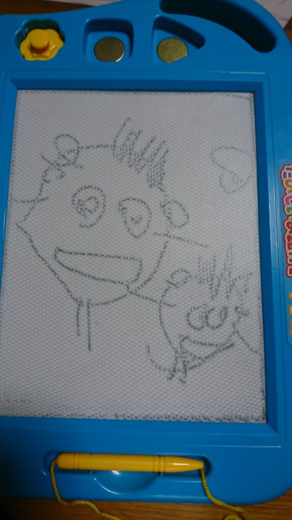 パパと弟 2017年10月12日 最終更新日時 : 2017年10月12日 サキ 娘が描いた絵です。 大きい方はパパで小さい方は弟なんだそうです。 ハートも描けていました。 このハート、初めて娘が描いたハートです。 嬉しくて、思わず写真を撮りました。 昨日、テレビでお化けの絵👻が出てきたとき、娘が描いてる絵に似てて笑っちゃいました。 大人は似てるって言うんだけど娘は 「ニョロニョロってなってないよね~❗ちゃんとあんよ、描いてあるもん😒💢💢」 と、怒ってました。 この頃の子供が描く絵って顔から手と足が出てて、それはそれで可愛くて私は好きです。 What do you think of this post?いいね (5)おもしろい (0)イマイチ (0) \ 最新情報をチェック / 共有: クリックして X で共有 (新しいウィンドウで開きます) X Facebook で共有するにはクリックしてください (新しいウィンドウで開きます) Facebook 関連記事 チャイルドシートを嫌がる長女が産まれて病院から帰ってく… お食い初めお食い初めは生後100日~12… 夜中の授乳が飛んでしまった・・・退院後も3時間おきに授乳をしな… 長男のお食い初め長男のお食い初めの日はたまたま… 今日はとっても気持ちいい天気今日は天気が良いから皆でお外で… ぱいぱい。バイバーイ(^^)/~~~現在2歳2か月になる息子が先月… FacebookXBlueskyHatenaCopy