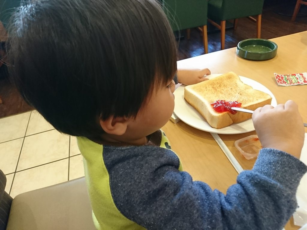 今朝、ガストへモーニングに行ったら普段食べているマヨコーンピザ🍕ではなく、「スクランブルエッグセットが良い😃」という息子。ここ1週間はずっとマヨコーンピザばかりだったのでどうしたのかな?と思いましたが、息子には言う通りスクランブルエッグセットを頼んだら自分でジャムをパンの上にのせていました💓