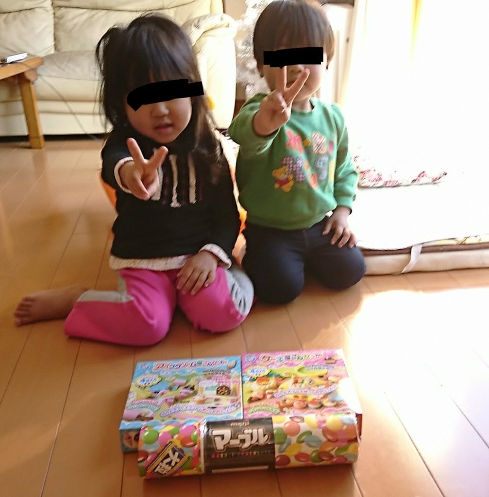 家に帰ってきて早速チョコを食べる子供たち。