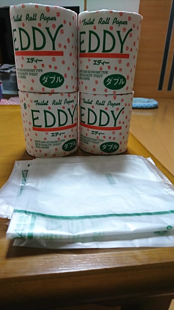 通常1か月分の新聞の量でトイレットペーパー4個貰えるんですが、今日はそれより多かったみたいで燃えるゴミを入れる袋も入っていました♪