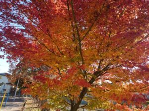 公園の入り口に紅葉の木があってそれがとても綺麗でした。