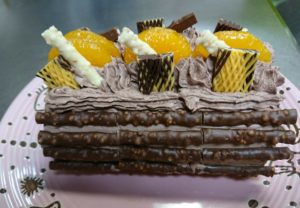 今回は子供たちの大好きなチョコを主役に考えたので飾り程度にしかミカンを乗せなかったけれど、フルーツ主役でも作れるし簡単に出来上がるし、ケーキってデコってる時間が結構楽しい♪