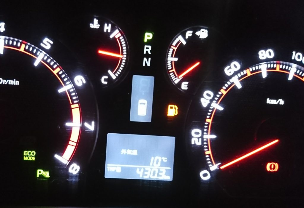 初めて見るヴェルファイアの給油警告ランプに舞い上がる私。