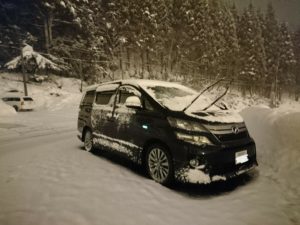 オールシーズンタイヤの実力は既に検証済みでしたが(年末にもダイナランドも含め、周辺の数ヵ所のスキー場へ夜に下見に来ていました👍)、現地に到着した頃雪が降ってきており、このまま降ったら万が一と言うことが考えられるため一番上の駐車場に行き、車を停めました。