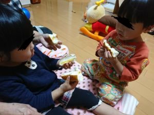 夕食後なので子供たちは食べきれないといけないので半分にしようと言うことに。