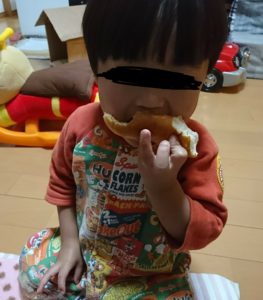 食べ始めたら息子は半分にちぎってクリーム部分から食べている(笑)