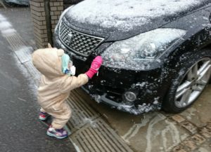 何故か息子は車に積もった雪を払い落として「キレイキレイしてるの」と忙しそう。