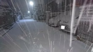 用心して早く家を出たら早く会社に到着して、雪かきの早出をした夫。