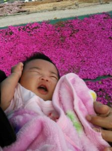 そこのお店は以前からよく行っていたので店員さんの1人が私のことを覚えていてくださり、「赤ちゃん産まれたの?」と声を掛けて下さいました。なので、その方に子供を抱っこしていただいて記念写真も撮りました。 翌日は芝桜が綺麗な頃だったので茶臼山へ行き、旦那がリフトに乗せて芝桜をみながら皆で一緒にお散歩をしました。