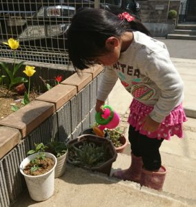 そういうと娘がジョウロに水を汲んで鉢植えの花にお水をあげてくれました。