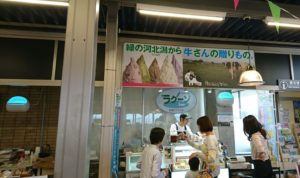 がっかりする子供達のご機嫌を取ろうと、道の駅の中に入って何かを買おう!ということにしました。