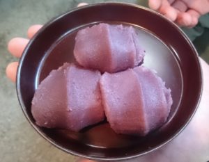 伊勢で有名なのはやっぱりこれ、赤福です。ゴールデンウィーク頃で暑かったし、赤福氷が売っていたので注文しました。