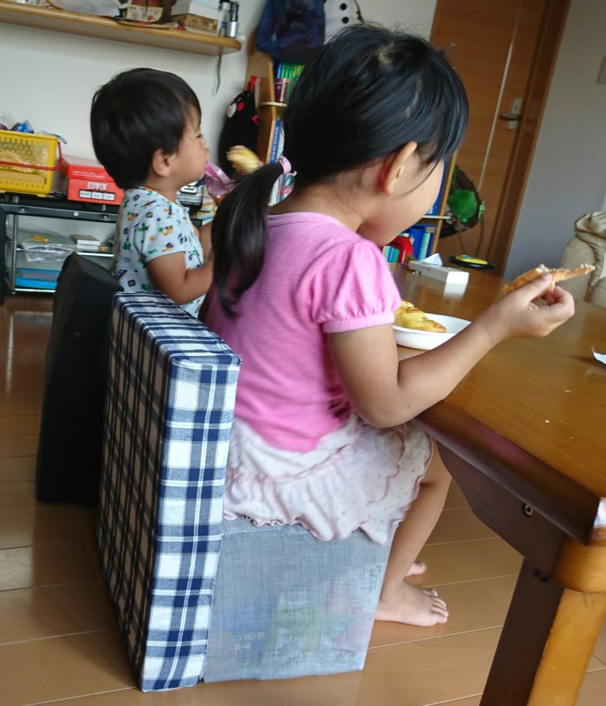 子供用の椅子を以前は購入したのですが、壊れてしまい今では手作りの椅子を使用しています。