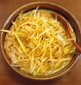 友人Aは北海道味噌ネギラーメン+炙りチャーシュー1枚(税抜970円)