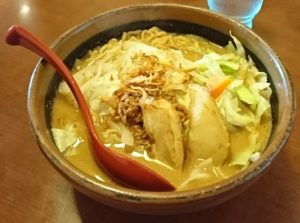 夫は迷いましたが期間限定の北海道味噌カレーラーメン(税抜き850円)