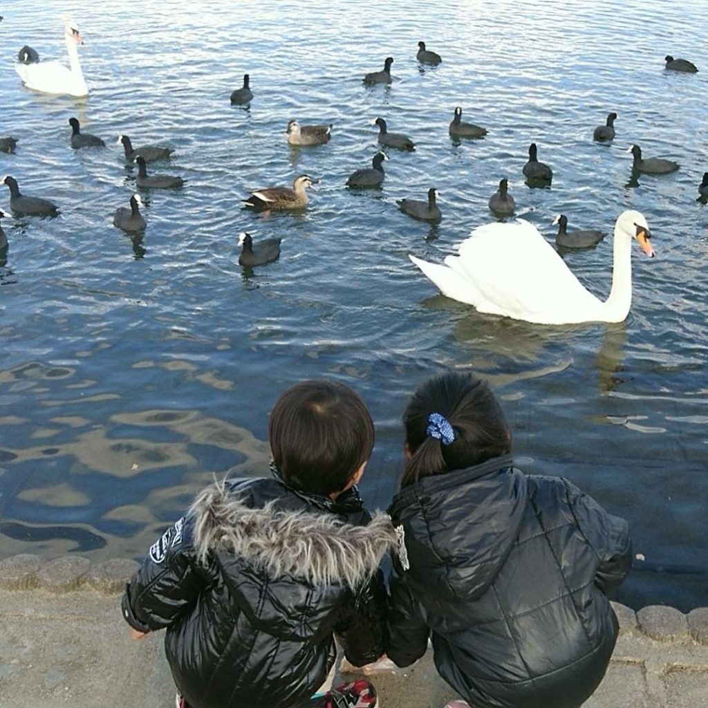 目的地に到着すると子供達は、大はしゃぎでガーガー(白鳥)に会うために走ります!