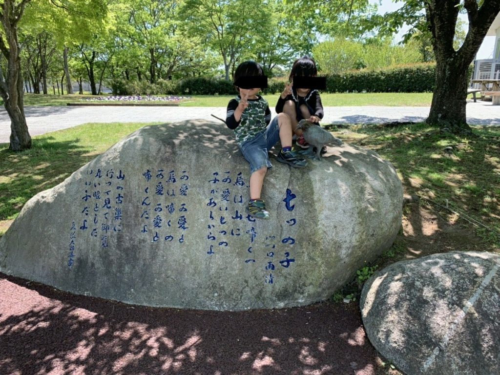 私の知らない曲も数曲あったけれど、子供達は一個一個の詩碑をみつけると大喜びでご機嫌でした。