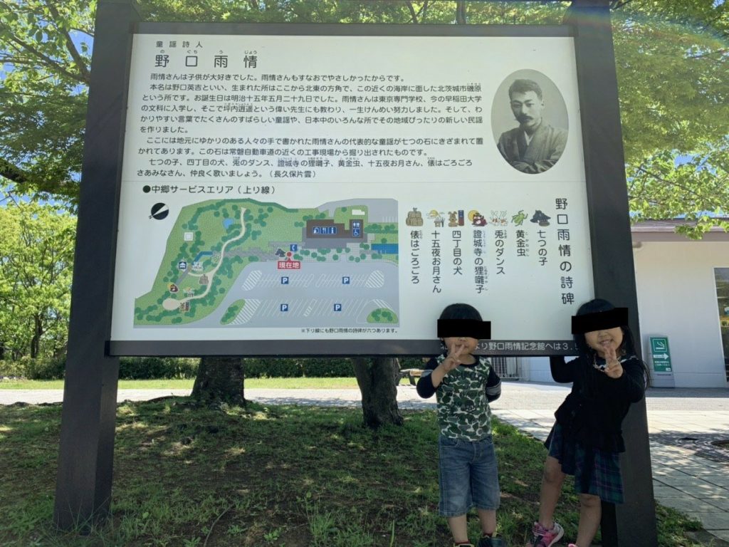 童謡詩人 野口雨情さんが生まれた場所がこのS.A.の近くだそうで、詩碑が色々とありました。
