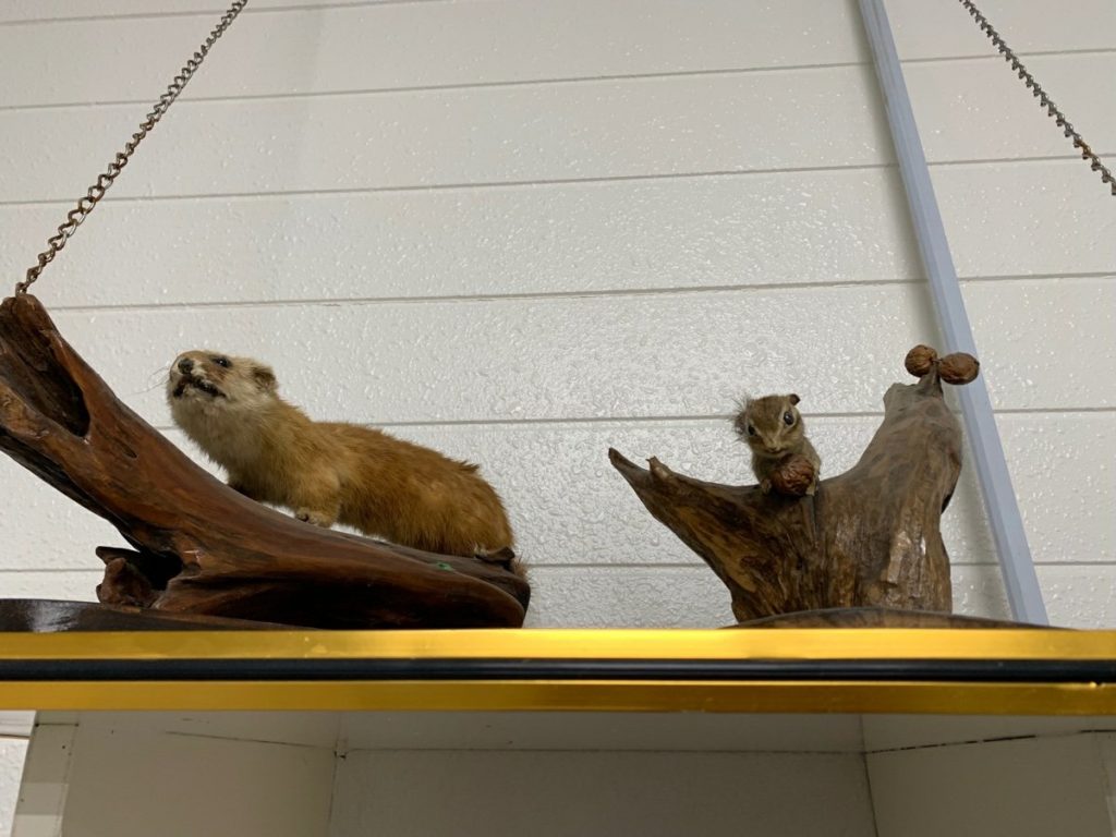流氷を冷凍庫の中で保存してあって、そこに剥製が色々と置かれていました。