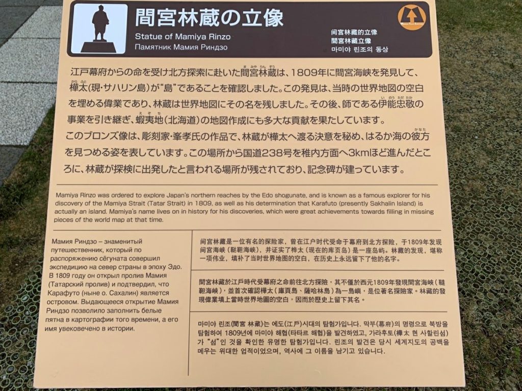 ここには最北端の地の碑以外にも間宮林蔵の像がありました。