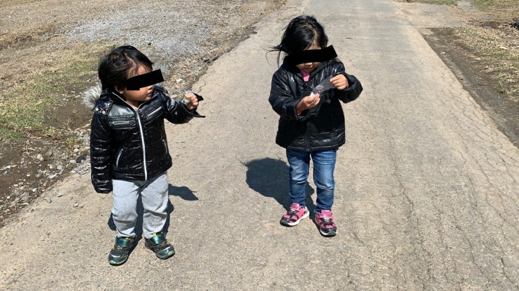 子供達がトイレに行きたいと言うので夫と子供達はトイレがある建物まで行きました。