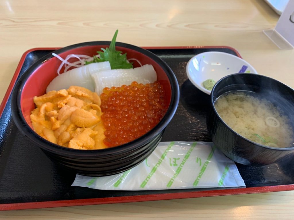 うにだけの注文は出来ないということなので、大人全員うに・いか・いくらが乗った三色丼を頼みました。