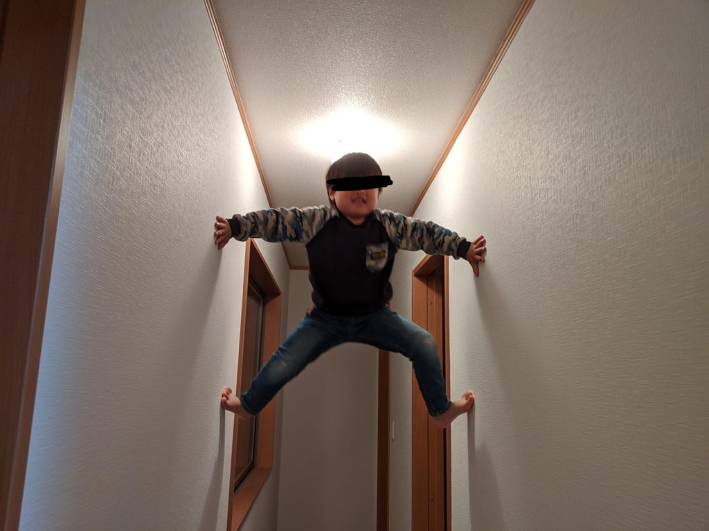 息子が壁をつたってのぼり、天井に頭を付ける喜んでいるΣ( ̄ロ ̄lll)